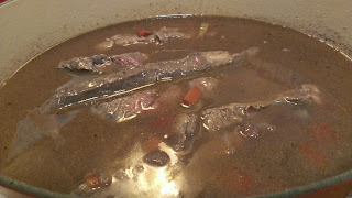 | Wine and veg about to meld flavors as the boil and reduce |