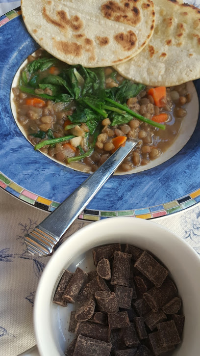 | Homemade vegan lentil soup, +Enjoy Life Foods chocolate |